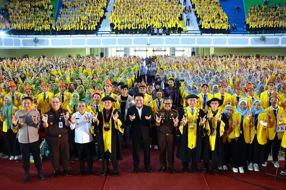 Dalam sambutannya, Herman Deru menegaskan tiga poin penting yang harus dimiliki mahasiswa sebagai bekal menuju masa depan: membangun pergaulan yang sehat, memanfaatkan bonus demografi, dan menguasai teknologi.