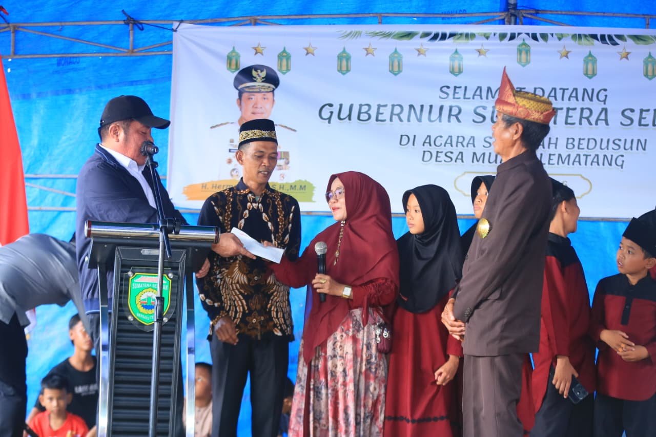 Pada kesempatan tersebut, Gubernur menyerahkan bantuan dana untuk TK/TPA desa sebagai bentuk dukungan terhadap pendidikan generasi muda.