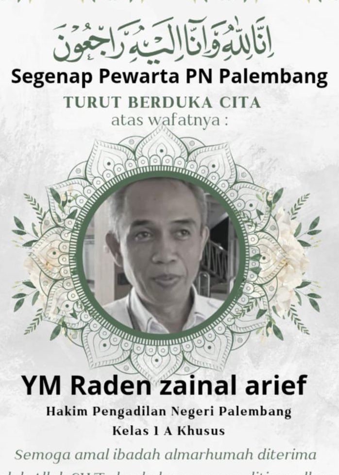 RIMAUNEWS.CO.ID, Palembang – Kabar duka menyelimuti keluarga besar Pengadilan Negeri (PN) Palembang Kelas IA Khusus. Salah satu hakim senior sekaligus Juru Bicara PN Palembang, Raden Zaenal Arief, S.H., M.H., meninggal dunia pada Rabu pagi, 12 November 2025, sekitar pukul 07.00 WIB di Palembang.