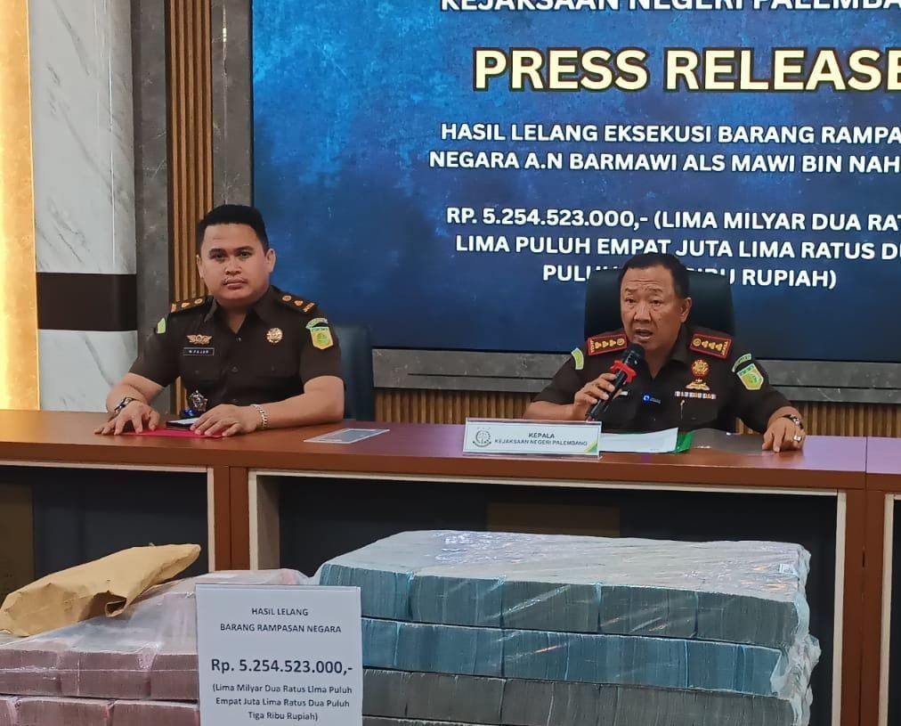 RIMAUNEWS.CO.ID, Palembang – Kejaksaan Negeri (Kejari) Palembang berhasil menyetor Rp5,25 miliar ke kas negara dari hasil lelang eksekusi barang rampasan. Hal tersebut disampaikan dalam konferensi pers di Kantor Kejari Palembang, Kamis (25/9/2025).