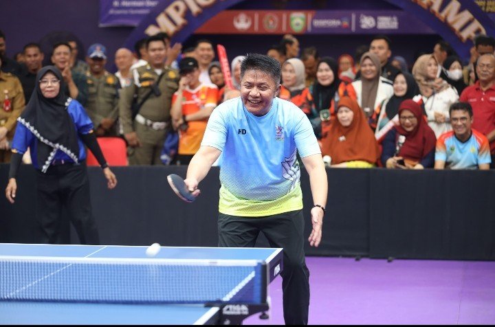 PORNAS KORPRI 2025 di Palembang Jadi Ajang Silaturahmi Kepala Daerah, Gubernur Herman Deru Tunjukkan Jiwa Sportivitas Lewat Tenis Meja