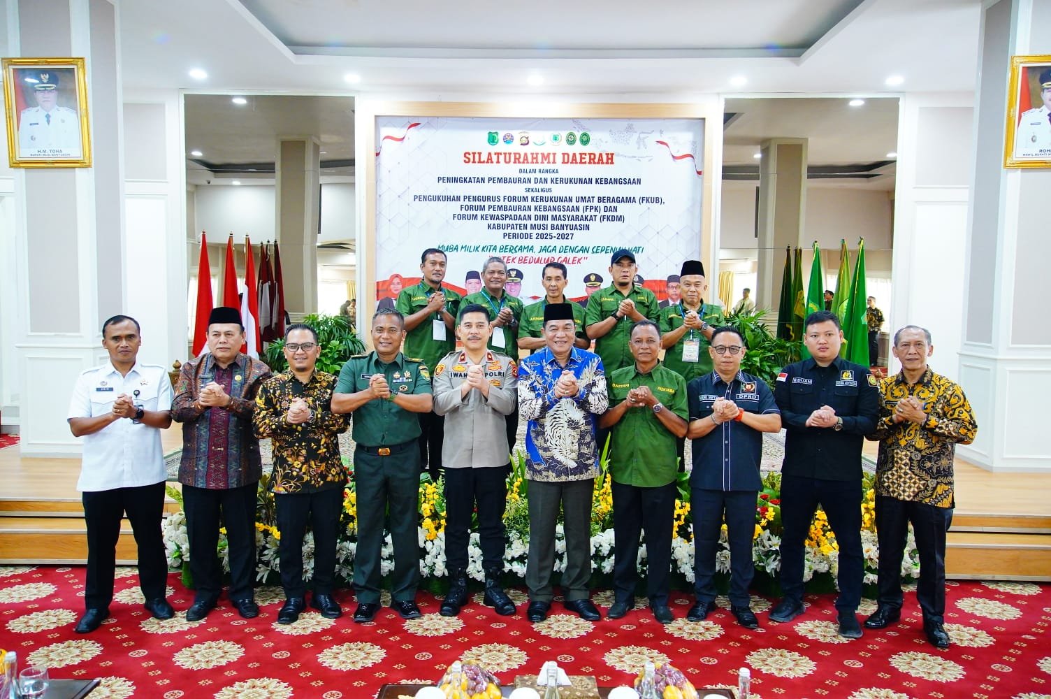 RIMAUNEWS.CO.ID, Muba – Pemerintah Kabupaten Musi Banyuasin melalui Badan Kesatuan Bangsa dan Politik (Kesbangpol) Muba menggelar Silaturahmi Daerah (Silatda) sekaligus Pengukuhan Kepengurusan Forum Kerukunan Umat Beragama (FKUB), Forum Pembauran Kebangsaan (FPK), dan Forum Kewaspadaan Dini Masyarakat (FKDM) Kabupaten Muba periode 2025–2027. Acara berlangsung di Guest House Griya Bumi Serasan Sekate, Kamis (11/12/2025).